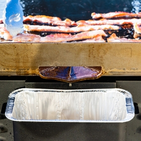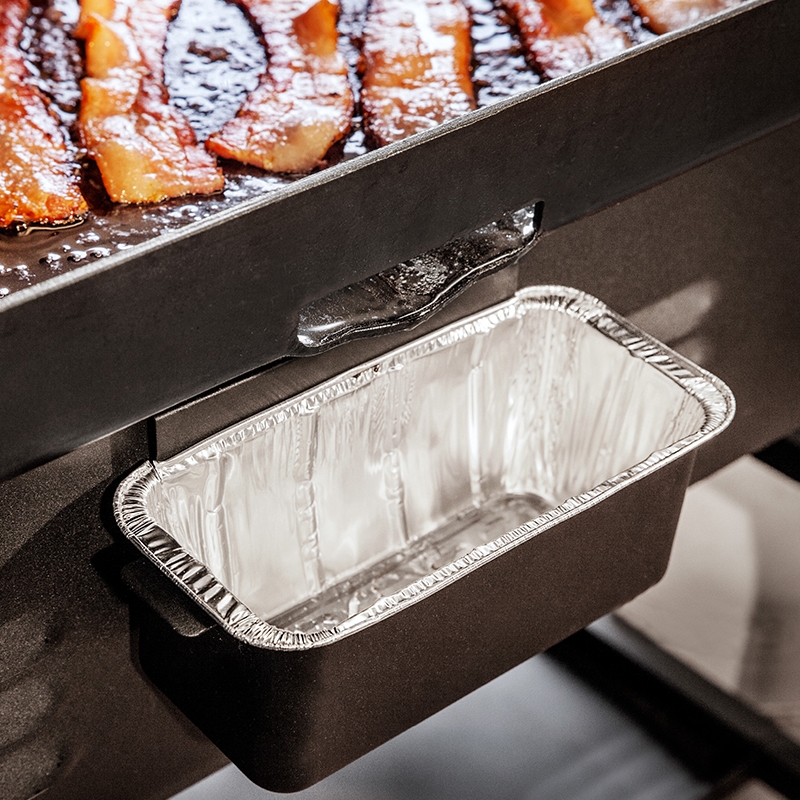Το Rear Grease Management System της πλακας ψησίματος Blackstone® κάνει τη διαχείριση του λίπους εύκολη, όμως τα ανταλλακτικά ταψάκια την κάνουν ακόμη πιο πρακτική και χωρίς ακαταστασία. Απλώς τοποθετήστε το ανταλλακτικό ταψάκι στο δοχείο συλλογής λίπους πριν ξεκινήσετε το μαγείρεμα και σπρώξτε το περιττό λάδι και τα υπολείμματα τροφών προς το πίσω άνοιγμα, ώστε να καταλήξουν στο δοχείο συλλογής λίπους. Με τα ανταλλακτικά ταψάκια Blackstone®, το καθάρισμα γίνεται πραγματικά παιχνιδάκι!