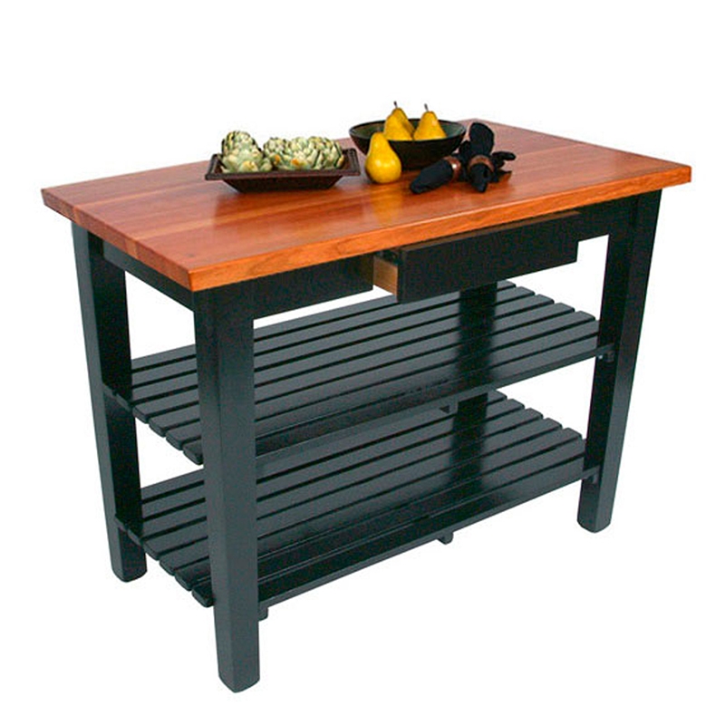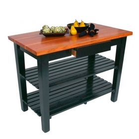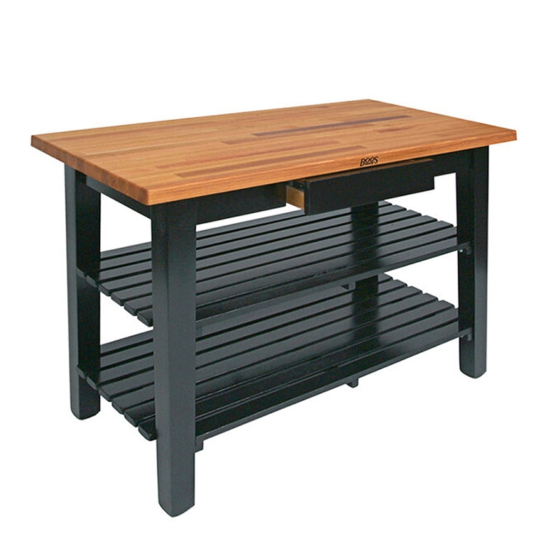 Για μια ποιοτική και κομψή προσθήκη στην κουζίνα σας, χρησιμοποιήστε αυτόν τον John Boos & Co. OC4825-D-2S-BK Classic Country 121,92 cm x 63,5 cm τραπέζι εργασίας από μαύρη δρυς με συρτάρι και 2 ράφια. Μέρος της American Heritage Collection, αυτό το τραπέζι διαθέτει στυλ country με μαύρη βάση και επάνω επιφάνεια από δρυς edge-grain πάχους 3,81 cm. Επιπλέον, το συρτάρι του προσφέρει γρήγορη και εύκολη αποθήκευση για μικρά αξεσουάρ κουζίνας όπως μαχαιροπήρουνα, ενώ το ραμμένο κάτω ράφι είναι ιδανικό για μεγαλύτερα αξεσουάρ κουζίνας ή διακόσμηση.