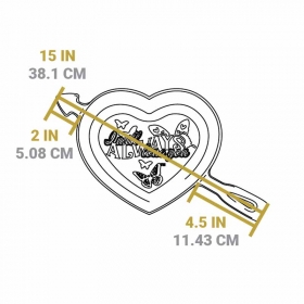 Με ένα ιδιαίτερο σχέδιο "I Will Always Love You" σε ένα μοναδικό τηγάνι σε σχήμα καρδιάς, αυτό το τηγάνι είναι η ωδή μας σε ένα από τα μεγαλύτερα ερωτικά τραγούδια που γράφτηκαν ποτέ. Με100% φυσική Seasoned επιφάνεια μαγειρέματος, έχει σχεδιαστεί για να λειτουργεί για γενιές, σε οποιαδήποτε πηγή θερμότητας. Είτε εκτίθεται με υπερηφάνεια στον τοίχο σας είτε θερμαίνεται στην κουζίνα σας, αυτό το τηγάνι είναι φτιαγμένο για τους λάτρεις. Απολαύστε το με την ψυχή σας!
