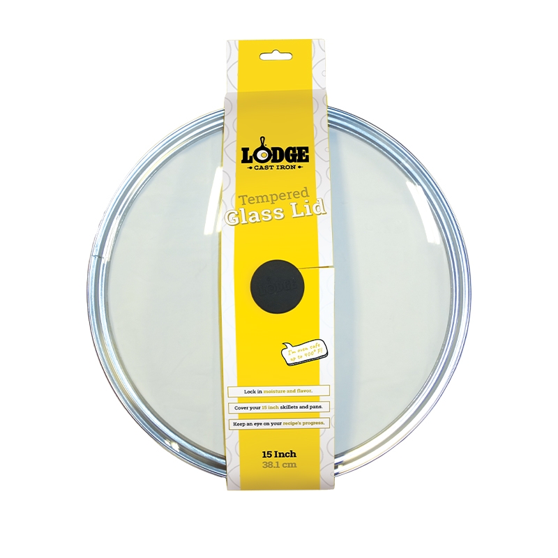 Το στρογγυλό γυάλινο καπάκι 38.1 εκ. της Lodge, κατασκευασμένο από ενισχυμένο γυαλί, είναι ελαφρύ και σας επιτρέπει να έχετε "εικόνα" του φαγητού σας, ενώ αυτό μαγειρεύεται χωρίς απώλεια υγρασίας και γεύσης. Χρησιμοποιήστε το γυάλινο καπάκι της Lodge σε αντίστοιχου μεγέθους κατσαρόλα ή τηγάνι.