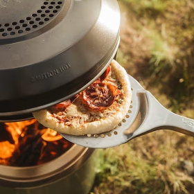 Το Stainless Turner 2.0 αποτελεί αναβάθμιση του εξοπλισμού σας για την παρασκευή pizza s στο σπίτι. Η εξαιρετικά μακριά λαβή του προσφέρει μεγαλύτερη απόσταση από τη φωτιά, ενώ η πλατύτερη επιφάνεια σας επιτρέπει να αφαιρείτε εύκολα μεγαλύτερες pizzas από τον φούρνο.