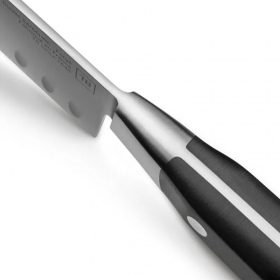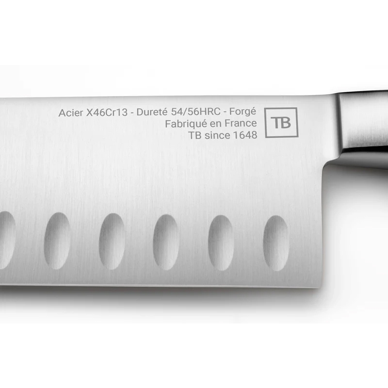 Ο συμπαγής σχεδιασμός αυτού του μαχαιριού από τη συλλογή Georges το καθιστά εξαιρετικά ευέλικτο. Κατασκευασμένο στη Γαλλία, διαθέτει λεπίδα 17 εκ. από ανοξείδωτο ατσάλι full tang και εργονομική λαβή POM, καθιστώντας το ιδανικό για κοπή, φέτες και ψιλοκόψιμο με ακρίβεια, ακόμα και σε συχνή χρήση. Η παραδοσιακή μορφή της λαβής Georges εξασφαλίζει σταθερό κράτημα, ενώ η προστατευτική ράχη (bolster guard) προσφέρει επιπλέον ασφάλεια κατά την κοπή.