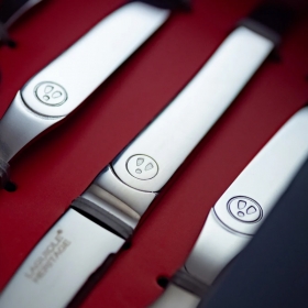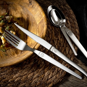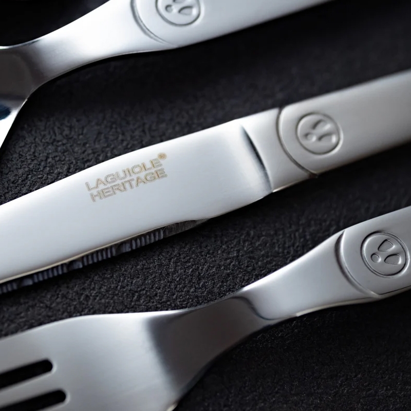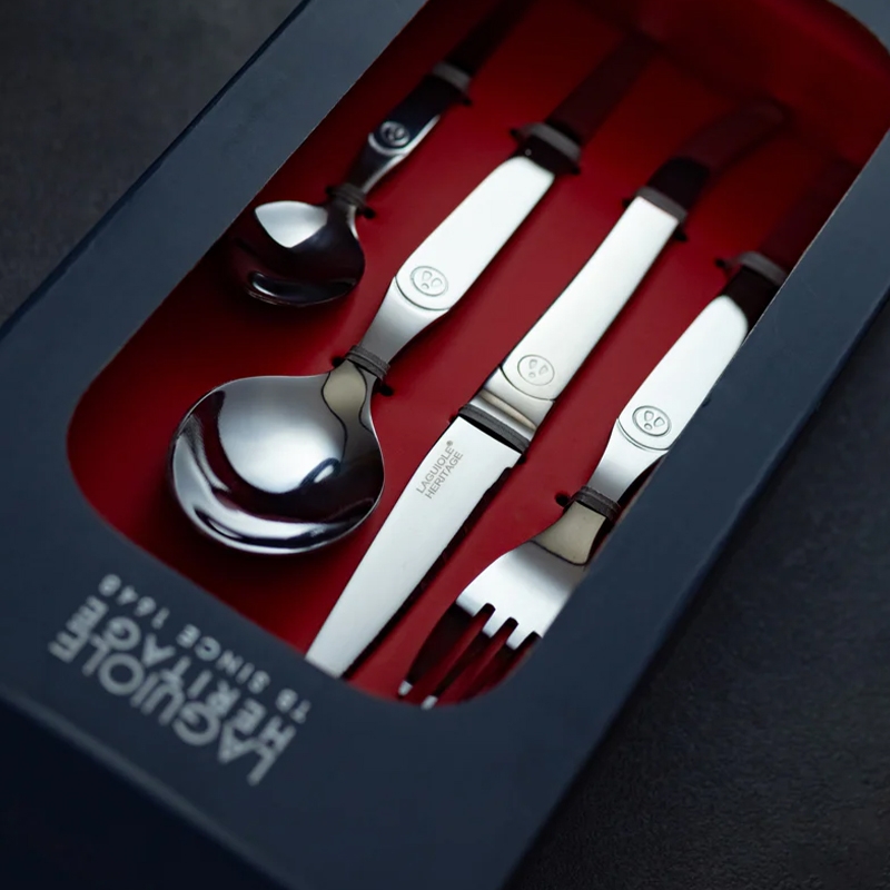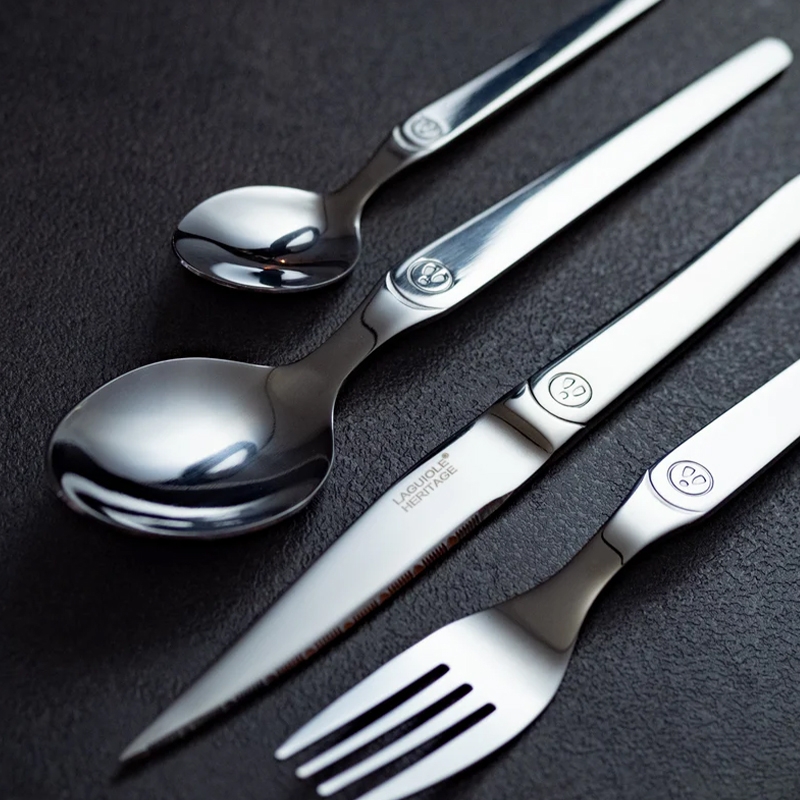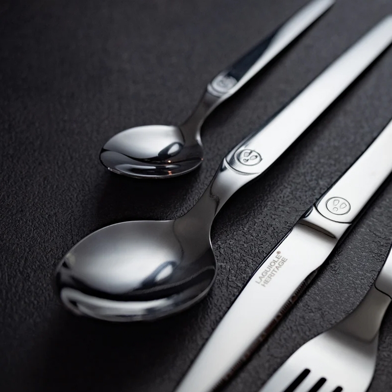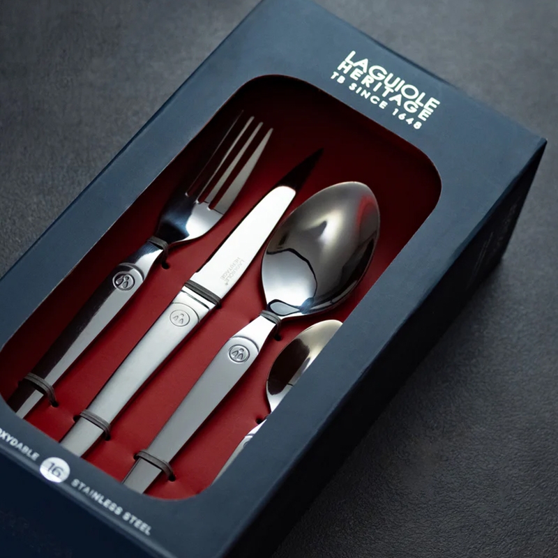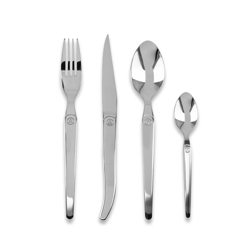 Το σετ Laguiole Intuition 16 τεμαχίων ξεχωρίζει για το λαμπερό του φινίρισμα και τα μονόμπλοκ μαχαίρια από ατσάλι.