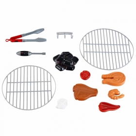 Τα τρόφιμα για ψήσιμο, κατασκευασμένα από υψηλής ποιότητας πλαστικό, πιάνονται εύκολα και γυρίζονται με τη λαβίδα της ψησταριάς. Είναι ιδανικό παιχνίδι μίμησης για τους μικρούς λάτρεις του φαγητού και φίλους του BBQ. Η ανθεκτική ψησταριά στέκεται σταθερά πάνω σε τρία πόδια και, χάρη στις ρόδες, μπορεί να μετακινηθεί όπου θέλουν ακόμη και τα πιο μικρά παιδιά. Έτσι, ο κήπος ή το bbq party είναι έτοιμο σε χρόνο μηδέν.