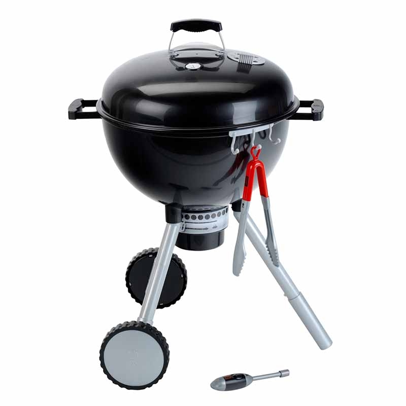 Αν θέλεις να γίνεις BBQ Master, πρέπει να ξεκινήσεις από νωρίς – και με την ψησταριά Weber kettle από την Theo Klein έχεις όλα όσα χρειάζεσαι. Όλα ξεκινούν ανάβοντας τα κάρβουνα με τον αναπτήρα-παιχνίδι, ο οποίος κάνει το σωρό από κάρβουνα που λειτουργεί με μπαταρία να λάμπει και να τσιτσιρίζει. Τώρα το μόνο που λείπει είναι η σχάρα πάνω από τα κάρβουνα και τα περιλαμβανόμενα τρόφιμα: μπριζόλα T-bone, ψάρι και λαχανικά.