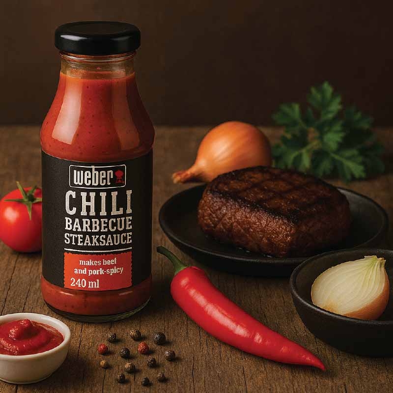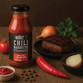 "Βάλτε φωτιά" σε κάθε γεύμα, με τη Weber Chili Barbecue Steaksauce! Το απόλυτο καρύκευμα για όσους λατρεύουν την πικάντικη ένταση! Ένα εκλεπτυσμένο μείγμα μπαχαρικών με διακριτική νότα τζιν που μετατρέπει κάθε κομμάτι κρέατος σε εκρηκτική γευστική εμπειρία. Ιδανική για να δώσεις φωτιά στο επόμενο μπάρμπεκιου σου!